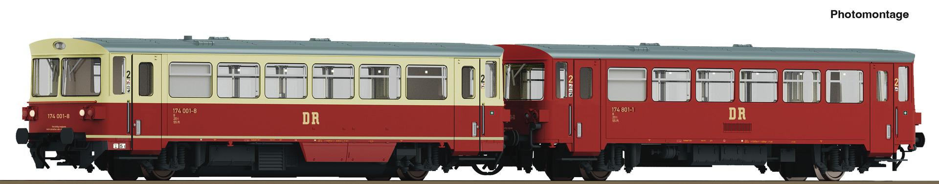 Dieseltriebwagen 174 001 mit Beiwagen der Deutschen Reichsbahn.