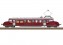 Schnelltriebwagen Serie RCe 2/4 - Vorbild: Elektrischer Schnelltriebwagen Serie RCe 2/4 Roter Pfeil, 3. Klasse, als Museumsfahrzeug für Extrafahrten unterhalten durch die Oensingen-Balsthal-Bahn AG (OeBB). Aufgearbeitet gibt der Triebwagen äußerlich den Zustand Mitte der 1950er Jahre in purpurroter Grundfarbgebung der SBB wieder. Triebwagen-Betriebsnummer 607. Betriebszustand 2023.Modell: Mit Digital-Decoder und umfangreichen Licht- und Geräuschfunktionen. Geregelter Hochleistungsantrieb. Spezialmotor mit Schwungmasse und Kardanwelle zum Treibgestell. 2 Achsen angetrieben. Haftreifen. Schweizer Lichtwechsel, Dreilicht-Spitzensignal und 1 weißes Schlusslicht konventionell in Betrieb, digital schaltbar. Zusätzlich kann auf ein rotes Schlusslicht umgeschaltet werden. Serienmäßig eingebaute Innenbeleuchtung. Spitzensignal und Innenbeleuchtung mit wartungsfreien warmweißen und roten Leuchtdioden (LED). Über die Funktionstasten können zusätzlich verschiedene Umgebungsgeräusche ausgelöst werden. Länge über Puffer 25,7 cm.Rechtzeitig zum 125-jährigen Jubiläum der Eröffnung der Oensingen-Balsthal-Bahn wurde der Schnelltriebwagen RCe 2/4 607 Roter Pfeil wieder betriebsfähig aufgearbeitet und kann heute wieder für Sonderfahrten angemietet werden.Dieses Modell finden Sie in Wechselstromausführung im Märklin H0-Sortiment unter der Artikelnummer 38860.