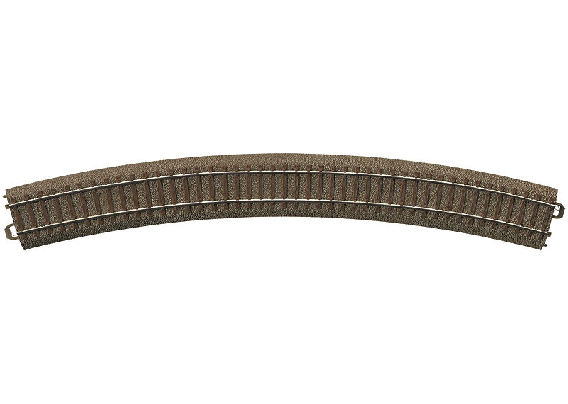 Radius R5 = 643,6 mm. Bogen 30°. Parallelgleis zum Radius R4 im Abstand von 64,3 mm. 12 Gleise bilden einen Kreis mit 133 cm Außendurchmesser.