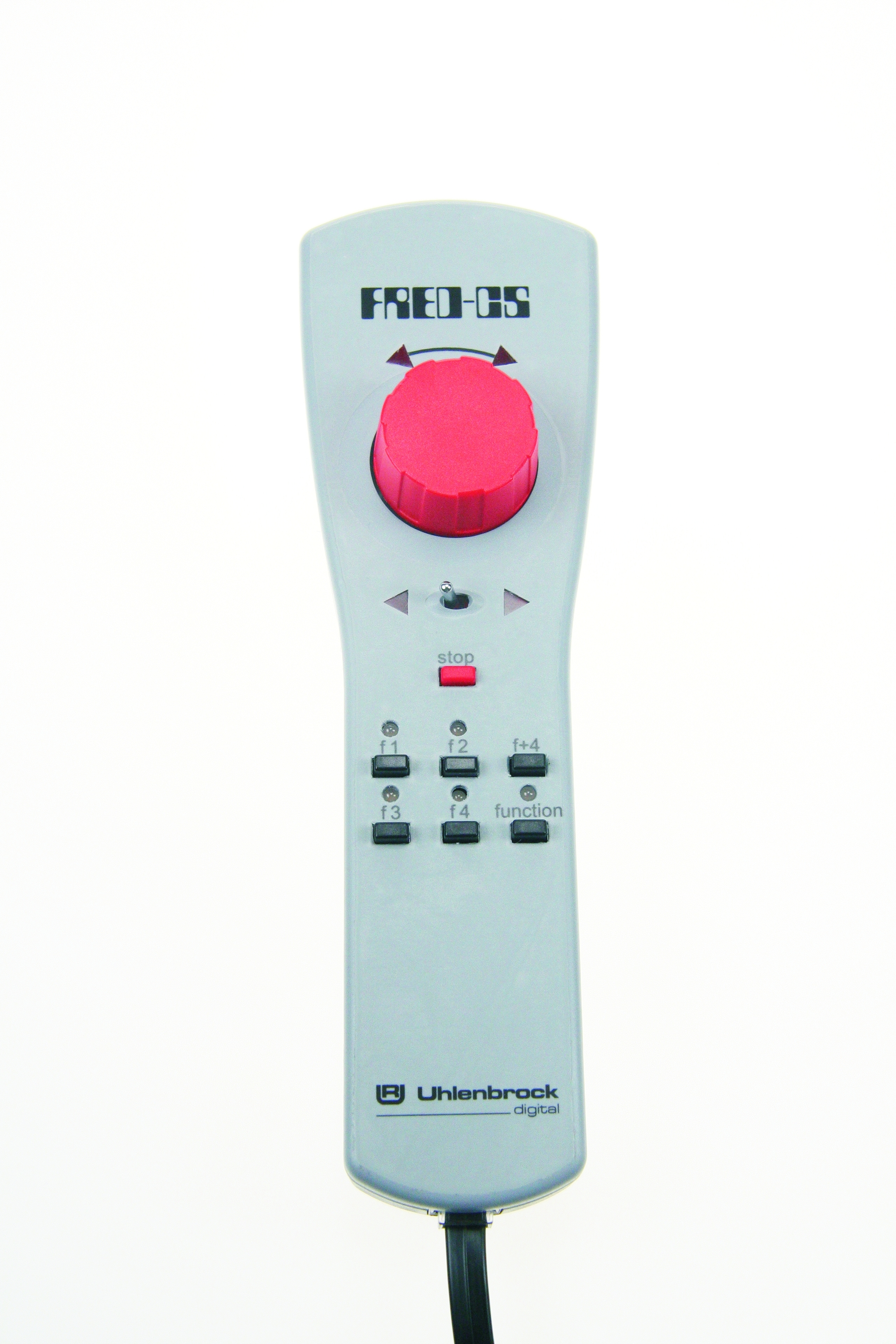 Der im Design zur Central Station passende Handregler hat einen großen Drehregler mit Endanschlag. Dieser ist sehr präzise und leichtgängig. Er verleiht Ihnen ein Fahrgefühl, das Sie bei Märklingeräten vergeblich suchen. Ideal ist er beim Rangieren. Mit dem FRED-CS in einer Hand kann man blind fahren und die Lok aus näch ster Nähe beobachten. So bleibt eine Hand frei für Kuppel- oder Ladetätigkeiten. Durch das 3 m lange Spiral-Anschlusskabel haben Sie dabei einen großen Aktionsradius. Ein Kippschalter ändert die Fahrt- richtung. So können Sie diese jederzeit ertasten und sind nicht auf die LED-Anzeige angewiesen. Die Stopptaste ist die Notbremse für die aktuell gesteuerte Lok. Mit den Funktionstasten lassen sich Licht und 14 Sonderfunktionen schalten. Die zu steuernde Lok wird dem FRED-CS von der Central Station aus zuge- wiesen. An eine Central Station können bis zu 31 FRED-CS angeschlossen werden. Lieferung inkl. 3 m Spiral-Anschlusskabel.