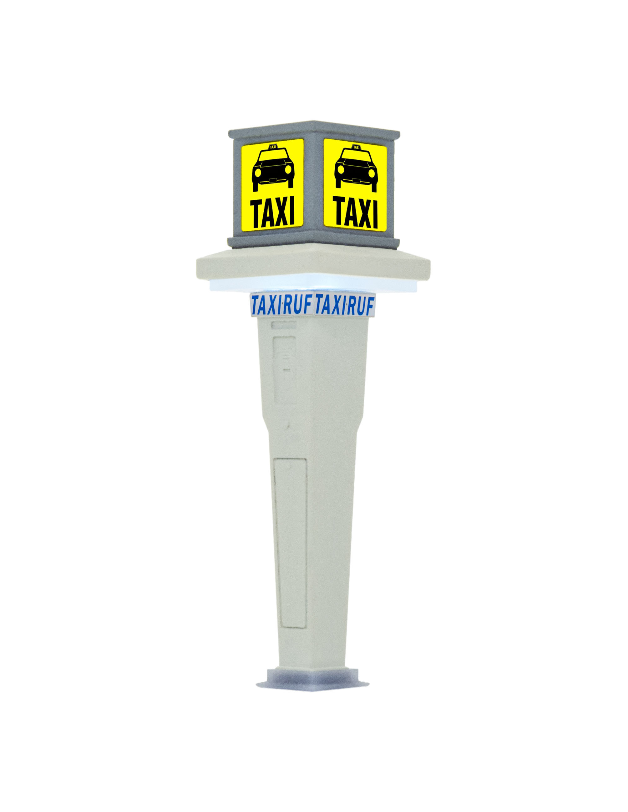 H0 Taxistand mit LED-Beleuchtung - Mit Steckfuß für besonders einfache Montage. Wartungsfrei dank LED-Beleuchtung. L 1 x B 1 x H 3,3 cm