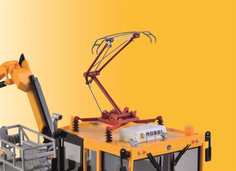 ROBEL Gleiskraftwagen 54.22 WIEBE mit Prüfpantograph und Arbeitskorb, Funktionsmodell für Zweileitersysteme. Dieses Modell überzeugt mit einer extra hierfür entwickelten und patentierten Antriebstechnologie, die der flachen Bauweise dieses Gleisbaufahrzeuges angepasst ist und mit sehr stabilen Fahreigenschaften aufwartet. Bei Langsamfahrt, im Betrieb mit Sound, digital und analog überzeugt der ROBEL auf ganzer Linie. Das Fahrzeug ist vielseitig einsetzbar und gehört auf jede Modellanlage. Mit elektrischem Antrieb, fahrtrichtungsabhängiger Dreilicht-Spitzenbeleuchtung bzw. roten Schlussleuchten, gelber Warnblinkleuchte. Der Kranarm ist ohne Antrieb und der Pantograph ohne elektrische Funktion. Der Arbeitskorb ist gegen den Kranhaken austauschbar. Das integrierte Soundmodul gibt die Pfeife und verschiedene betriebsabhängige Geräusche wieder. RailCom-fähiger Digitaldecoder für DCC/MM und Analogbetrieb (DC/AC) mit integriertem Stromspeicher. Funktionsumfang im Analogbetrieb: Fahrmodus vorwärts/rückwärts, Warnblinkleuchte und Kabinenbeleuchtung aktiv, Sound aktiv (Lautstärke einstellbar über CV), Licht aktiv. Funktionsumfang im Digitalbetrieb: Fahrmodus vorwärts/rückwärts, schaltbare Funktionen: Warnblinkleuchte, Kabinenbeleuchtung, Sound (Lautstärke einstellbar über CV), Pfeife, Kompressorsound, Licht. Mit Kupplungsschächten nach NEM 362 beidseitig, Kurzkupplungskinematik und beiliegender Systemkupplung. Maße: LüP 13,4 x B 3,6 x H 4,8 cm.