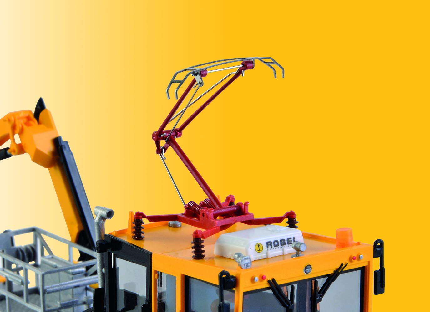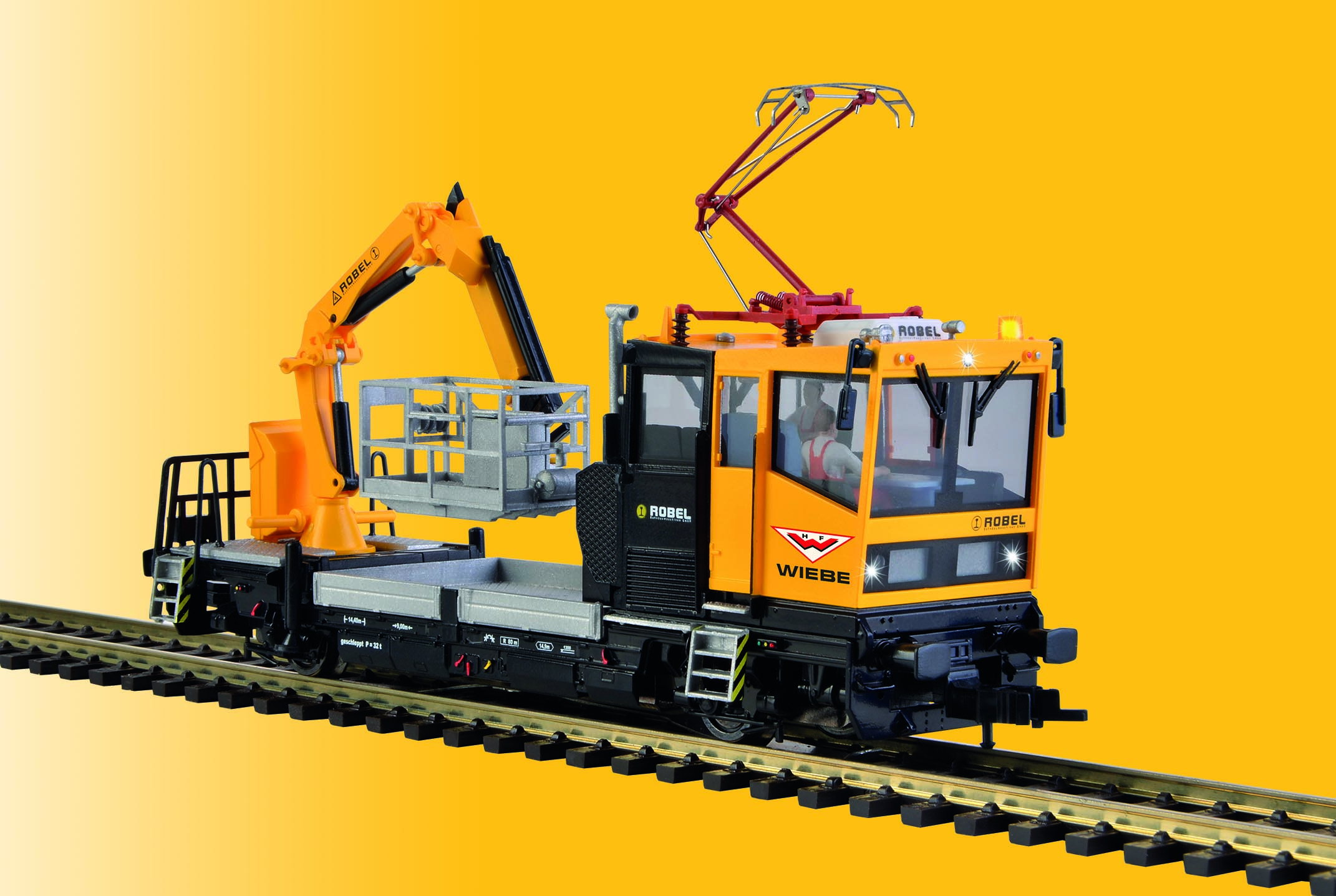 ROBEL Gleiskraftwagen 54.22 WIEBE mit Prüfpantograph und Arbeitskorb, Funktionsmodell für Dreileitersysteme. Dieses Modell überzeugt mit einer extra hierfür entwickelten und patentierten Antriebstechnologie, die der flachen Bauweise dieses Gleisbaufahrzeuges angepasst ist und mit sehr stabilen Fahreigenschaften aufwartet. Bei Langsamfahrt, im Betrieb mit Sound, digital und analog überzeugt der ROBEL auf ganzer Linie. Das Fahrzeug ist vielseitig einsetzbar und gehört auf jede Modellanlage. Mit elektrischem Antrie b, fahrtrichtungsabhängiger Dreilicht-Spitzenbeleuchtung bzw. roten Schlussleuchten, gelber Warnblinkleuchte. Der Kranarm ist ohne Antrieb und der Pantograph ohne elektrische Funktion. Der Arbeitskorb ist gegen den Kranhaken austauschbar. Das integrierte Soundmodul gibt die Pfeife und verschiedene betriebsabhängige Geräusche wieder. RailCom-fähiger Digitaldecoder für DCC/MM und Analogbetrieb (DC/AC) mit integriertem Stromspeicher. Funktionsumfang im Analogbetrieb: Fahrmodus vorwärts/rückwärts, Warnblinkleuchte und Kabinenbeleuchtung aktiv, Sound aktiv (Lautstärke einstellbar über CV), Licht aktiv. Funktionsumfang im Digitalbetrieb: Fahrmodus vorwärts/rückwärts, schaltbare Funktionen: Warnblinkleuchte, Kabinenbeleuchtung, Sound (Lautstärke einstellbar über CV), Pfeife, Kompressorsound, Licht. Mit Kupplungsschächten nach NEM 362 beidseitig, Kurzkupplungskinematik und beiliegender Systemkupplung. Maße: LüP 13,4 x B 3,6 x H 4,8 cm.