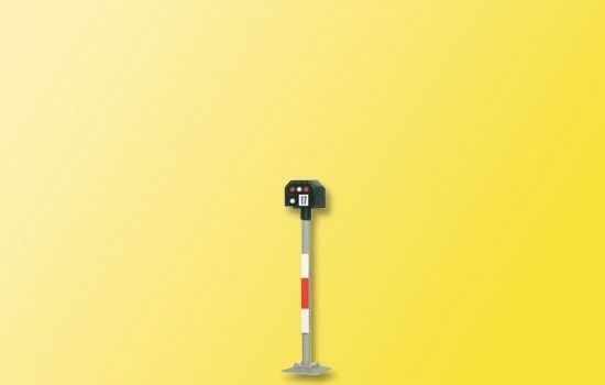 Signal der Einheitsbauart. Filigraner Messingmast in originalgetreuer Lackierung. Patentsteckfuß für einfache Montage. Mit je 2 roten und weißen LEDs, wartungsfrei. Signalbilder Sh0 und Sh1. Passendes Steuermodul: Art. 5221. Höhe: 2,3 cm.
