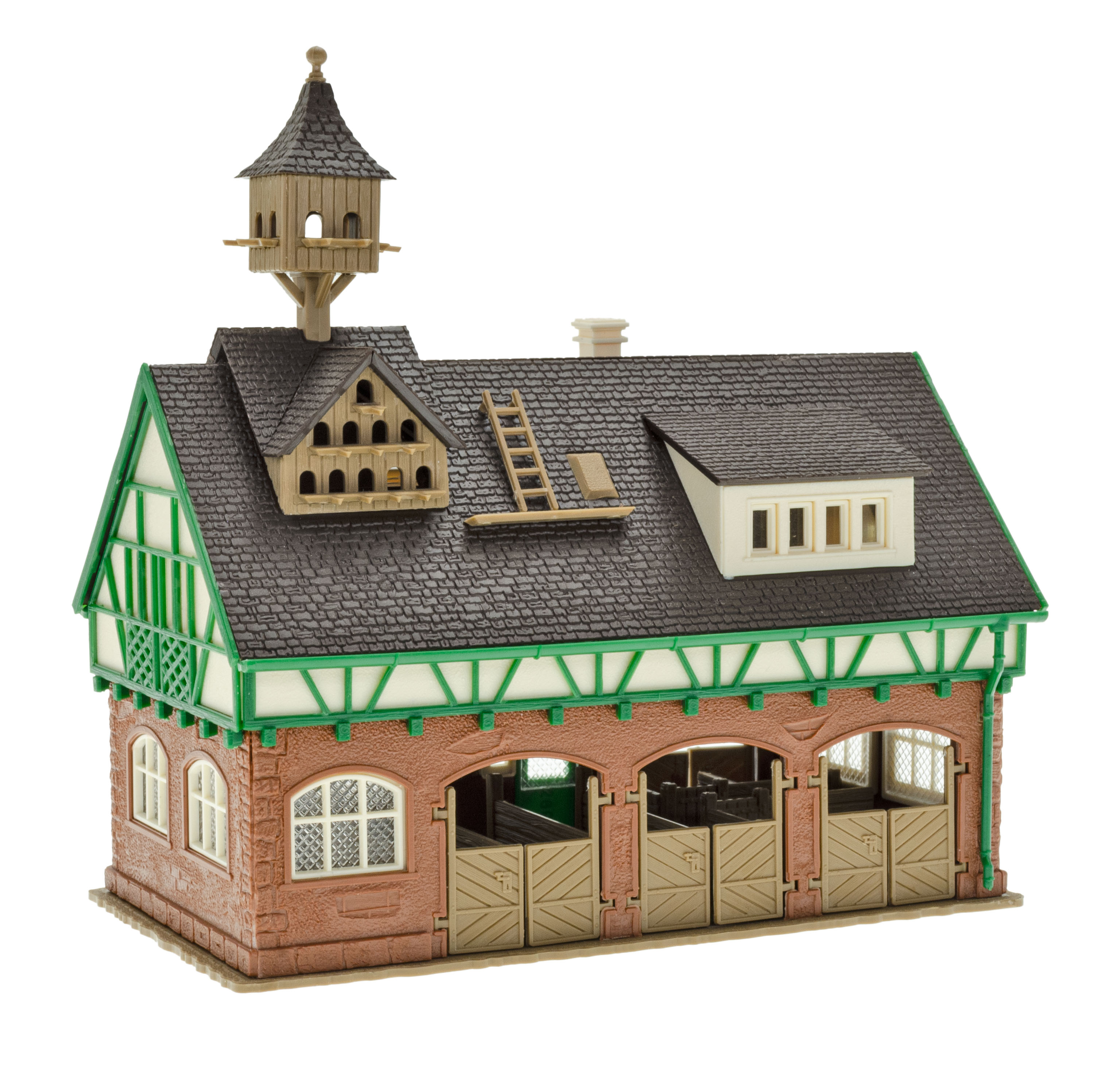 Das Dach des Stalls ist abnehmbar. So kann das Innere nach Belieben gestaltet und verändert werden. Maße: L 13,5 x B 8 x H 13,5 cm.
