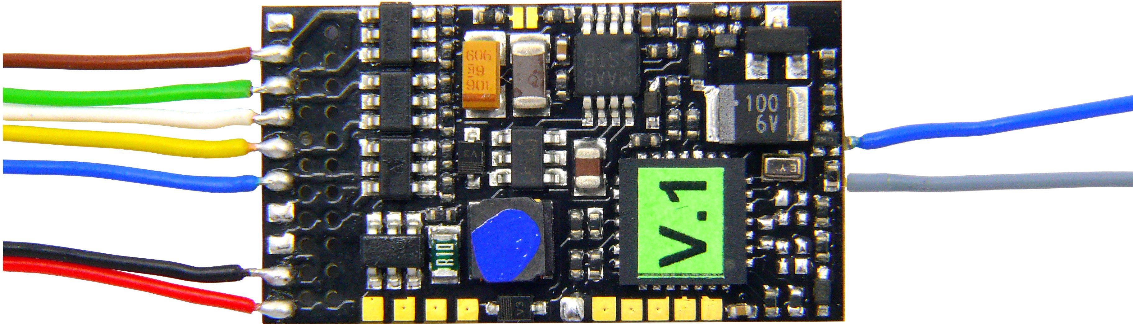 Funktionsdecoder 10 Drähte NV. Details: Maße: 28,5 x 15,5 x 4 mm, 1,6 A, 8 FA, 1,5 V, Energiespeicher