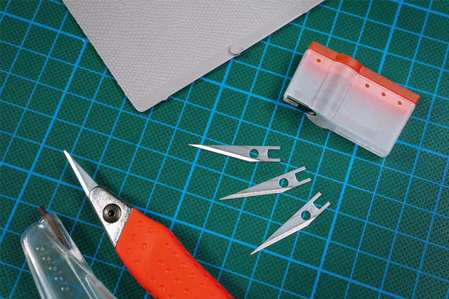 Wechselklingen spitz für das Modellbaumesser Art. 135-90005. Die sehr stabilen und dennoch flexiblen Messerklingen sind besonders gut im Modellbau einsetzbar. Die spezielle Spenderbox erlaubt die gefahrlose Entnahme einzelner Klingen.