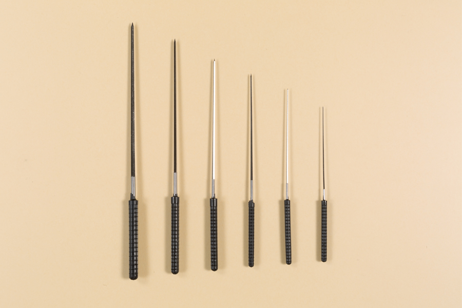 Dieses Spezialwerkzeug gehört in jede Modellbau-Werkstatt. Es dient zum Aufweiten von Bohrlöchern im Zehntelmillimeter-Bereich. Auch Bohrungen, die nicht 100%ig rund sind können damit bearbeitet werden. Das kommt vor, wenn z.B. kleine Grate oder Farbreste im Bohrloch sind. Auch sind Löcher nach dem Lackieren manchmal mit einem dünnen Farbfilm verschlossen. Dieser kann dann aufgestochen und die Bohrung aufgeweitet werden.