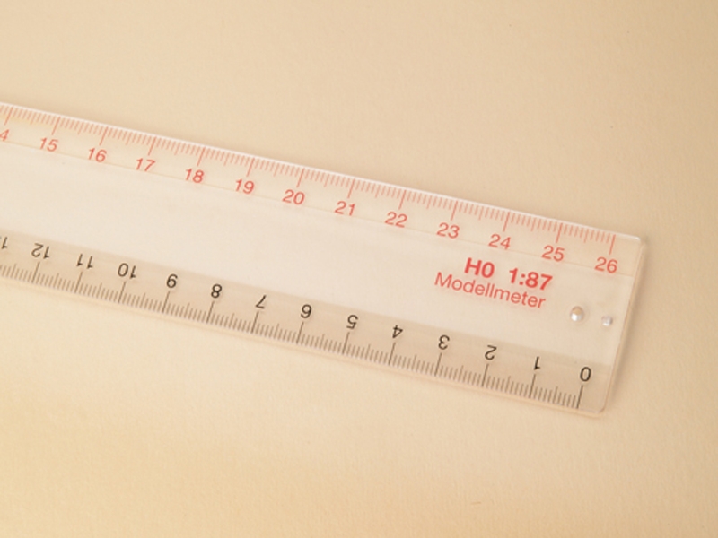 Für die genaue maßstabsgetreue Nachbildung im Modell ist unser Lineal ein unverzichtbares Hilfsmittel. Mit Zentimeter- und Modellmeter-Einteilung.