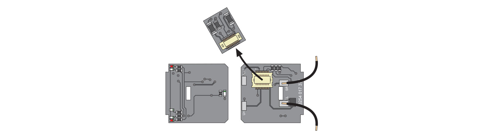 Umbauset zur Umrüstung älterer Steuerwagen des Typs NEVA Retica mit Digitalschnittstelle Next18 (NEM 662) zur vereinfachten Digitalisierung, bestehend aus einer Lichtleiterplatte mit Analogstecker