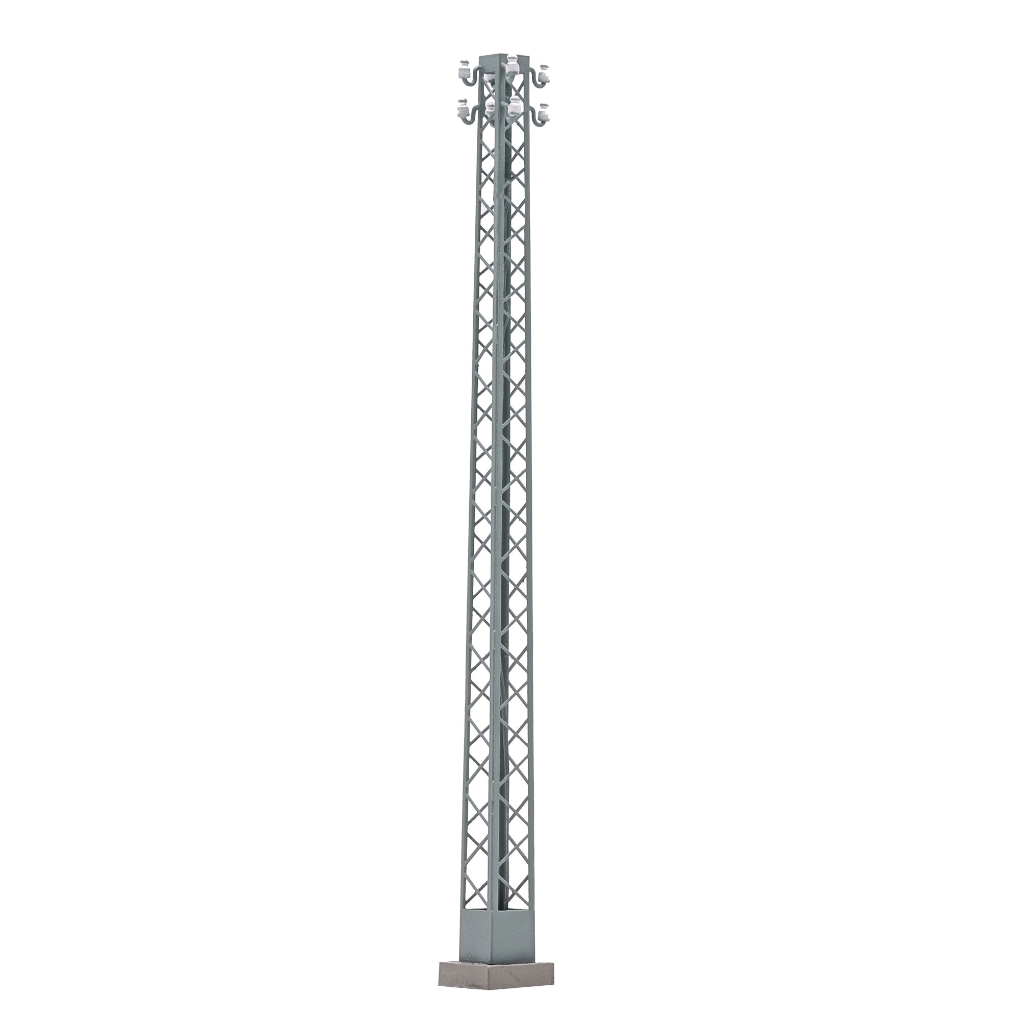 Gittermast für Freileitungen in edler Metallausführung und mit filigranen Isolatoren. Fertigmodell. Passende Ergänzung: Freileitungsseil Nr. 1750.