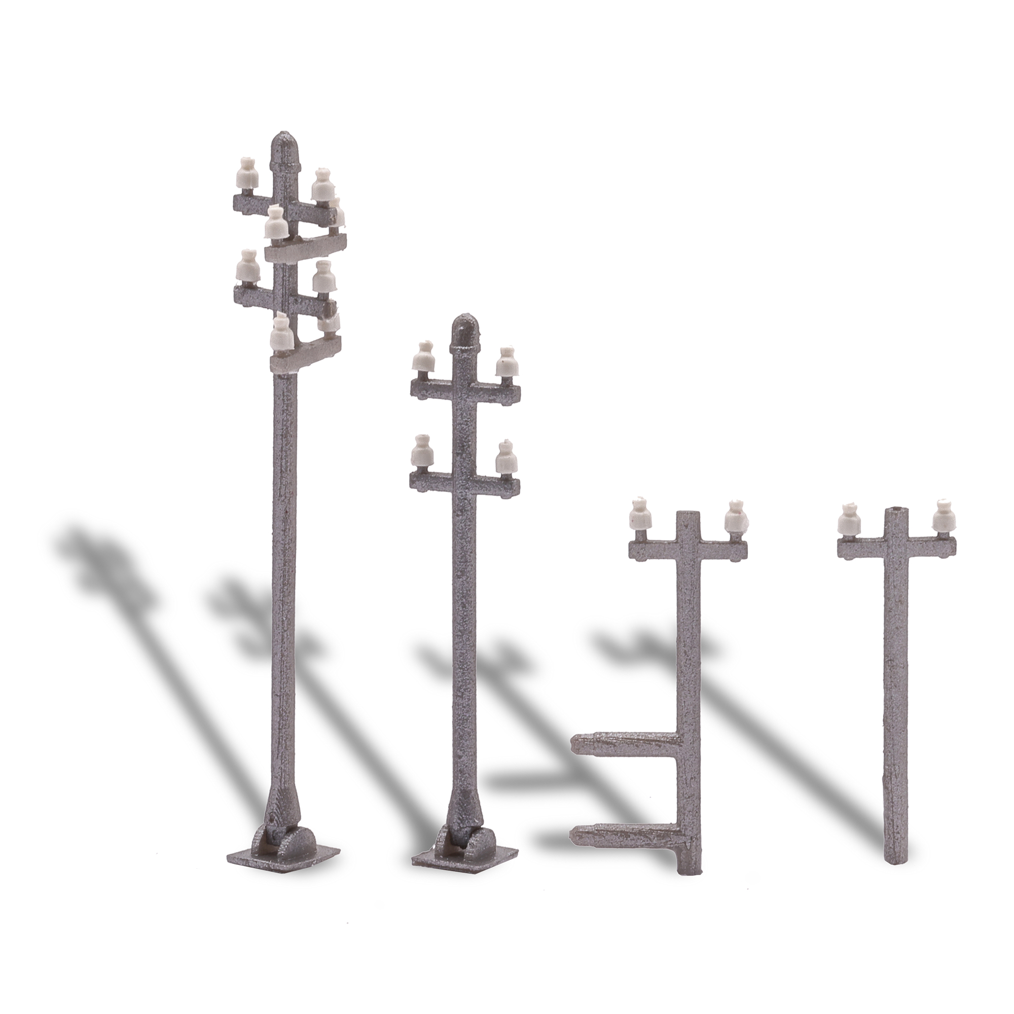 Bausatz für 8 Dachständer (2 x 4 verschiedene Formen) zur Darstellung der Stromversorgung über ein Freileitungssystem.