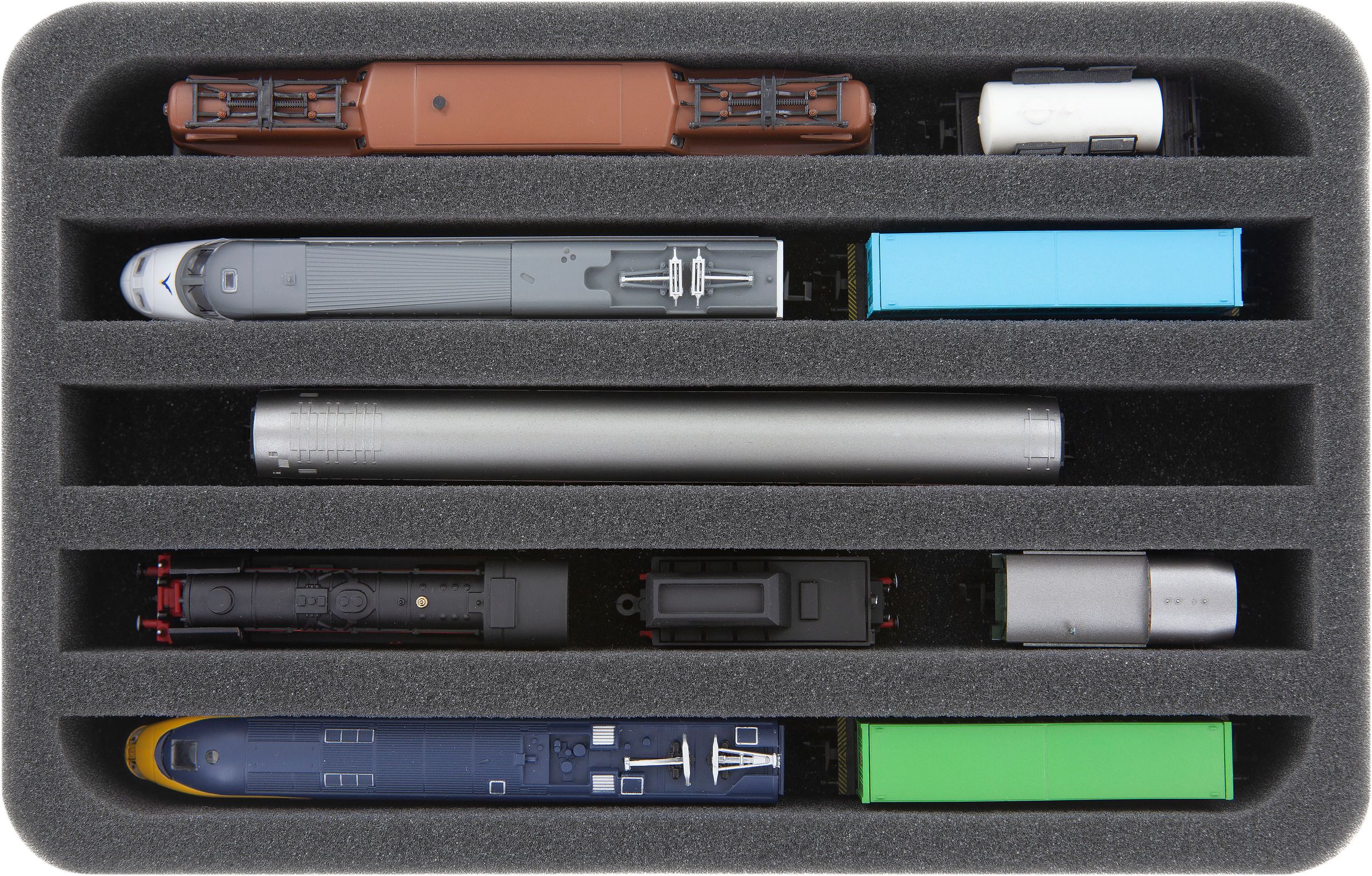 Schaumstoffeinlage Spur N - stehend - 5 Stege für Modelleisenbahn Loks, Wagons und Fahrzeuge
