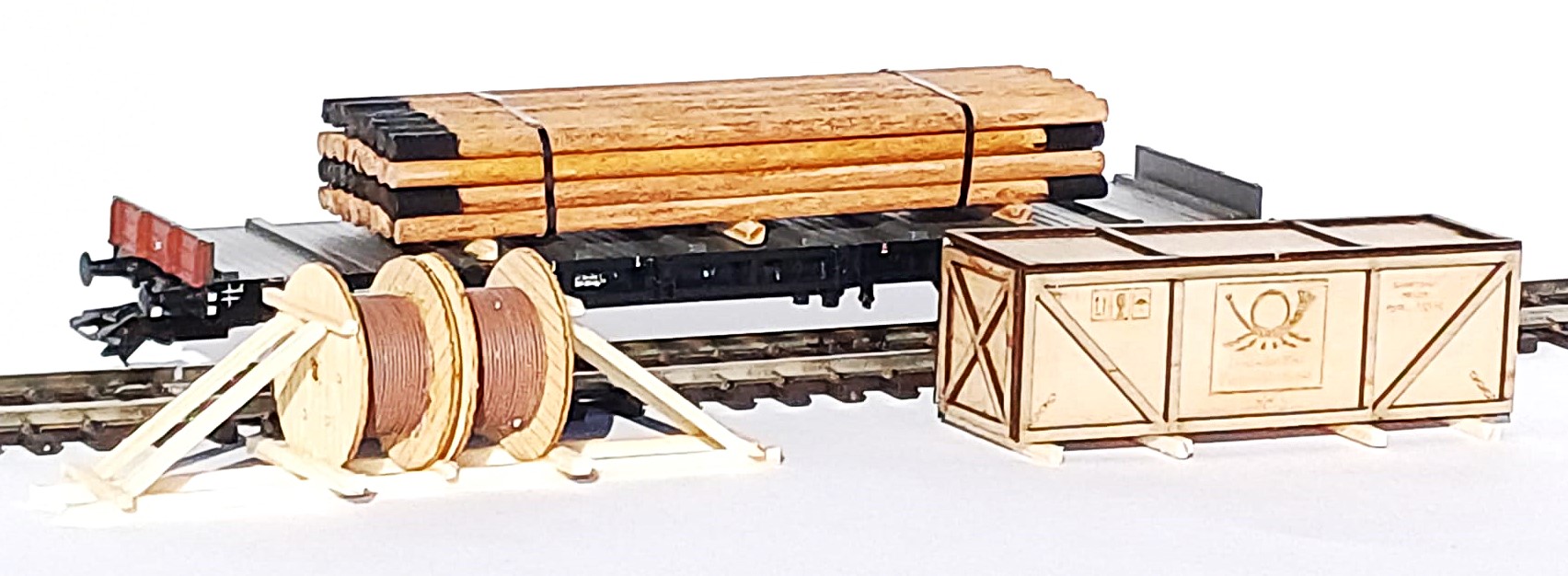 Ladegut-Set Telegrafie/Ost (Kiste/Trommel/Telegrafenmaste) / HO