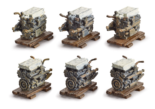 6 Stück, gealtert. Fertig zum Einsatz auf Flach- oder Rungenwagen.