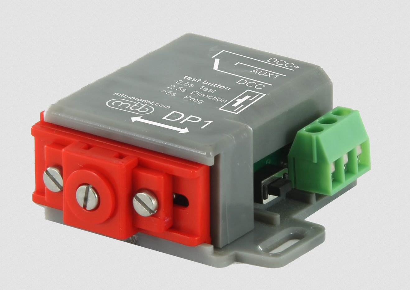 Die Weichenantriebe DP1 sind mit einer DCC-Schnittstelle ausgestattet, die sowohl den Empfang digitaler Befehle als auch die Stromversorgung des Antriebs sicherstellt. Für die Stromversorgung der Weichenherzstücke steht ein zusätzlicher Kontakt zur Verfügung, der das Herzstück mit DCC-Signal versorgt. Eine LED-Anzeige signalisiert die Zustände; für Konfiguration und Test dient eine Hilfstaste.