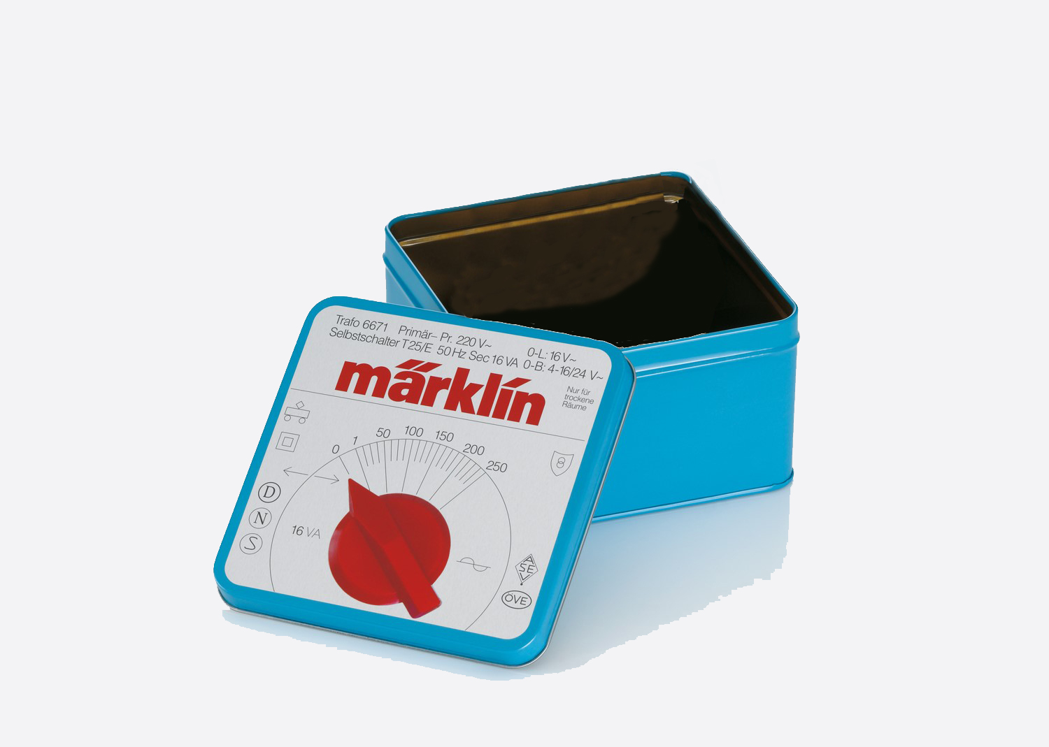 Prima, dann geht es Ihnen genauso wie vielen anderen Menschen, die beim Gedanken an Märklin sofort wieder den blauen Trafo aus der eigenen Kindheit vor Augen haben. Ein Symbol für die glücklichen Tage der Kindheit, in denen man mit Vater oder Großvater mit der Märklin Bahn gespielt hat. Jetzt gibt es den Trafo auch als Keksdose.