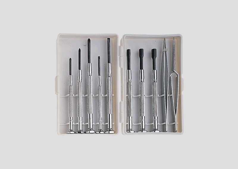 Geeignet zur Wartung von H0- und Z-Modellen. Inhalt: je 1 Kreuzschlitz-Schraubendreher PH 00, PH 0 und PH 1. Je 1 Schlitz-Schraubendreher 2,0 mm und 3,0 mm. Je 1 Innensechskant-Schraubendreher 2,5 mm, 3,0 mm und 3,5 mm. 1 Pinzette und 1 Kreuzpinzette.