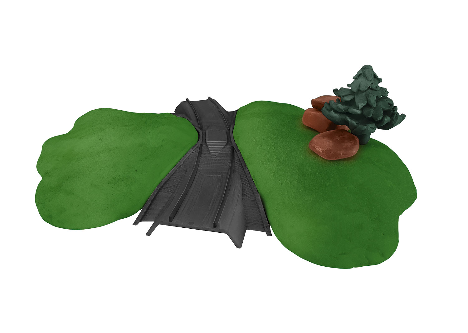 Märklin my world. Spielerische Aufgleishilfe mit Landschaftselementen, zur harmonischen Eingliederung in die Eisenbahnwelt. Die Aufgleishilfe besteht aus einem speziellen, gebogenen Kunststoffgleis mit Führungskeilen im Gleisbett, die die Räder beim Schieben oder auch bei voller Fahrt richtig auf dem Gleis positionieren. Das Gleis wird dauerhaft in das Gleisbild eingefügt. Zur harmonischen Einbindung in die Spielewelt, liegen dem Produkt Landschaftselemente bei, die an das Gleis angesteckt werden können.