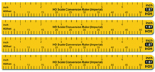 Umrechnungslineal für Baugröße 1:87-H0, imperiale Maßeinheiten - (4er Set)
