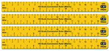 Umrechnungslineal für Baugröße 1:87/H0, metrische Maßeinheitenn - (4er Set)