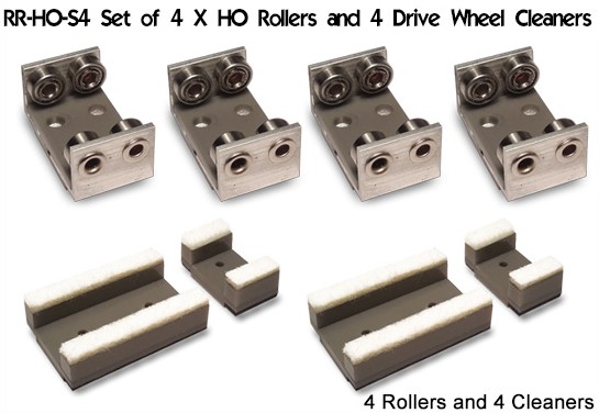 Set mit 4 Stück HO/OO Rollböcke + Reinigungsfilze