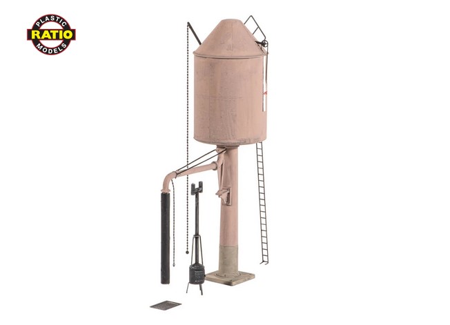 Wassertürme mit Kränen wurden in der Regel auf Bahnsteigen und in anderen Bereichen mit beengten Platzverhältnissen eingesetzt. Mit diesem Bausatz lässt sich entweder ein Turm mit flacher Spitze oder der bekannte konische Typ der GWR bauen. Inklusive Herd, Wasserkran etc. sowie geätzter Messingkette und Leiter; zur Fertigstellung des Modells werden Kleber und Farben benötigt. Verwenden Sie den Ratio-Wasserkran- und Feuerteufel-Bausatz 413, wenn weitere Kräne benötigt werden
