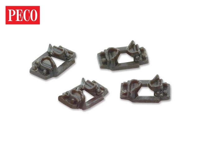 Diese Pandrol (TM) Clips sind originalgetreu im Maßstab 4 mm nachgebildet, komplett mit Lockspike (TM) Detail. Der Zusammenbau erfolgt mit der Peco 3-Wege-Gleisspur (IL-116) und flüssigem Styrolkleber.