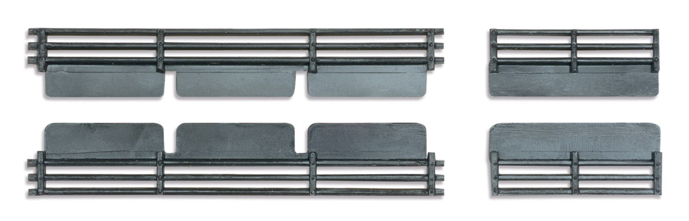 Schwarze Kunststoff-Formteile für den Umbau eines offenen 7-Planken-Wagens.