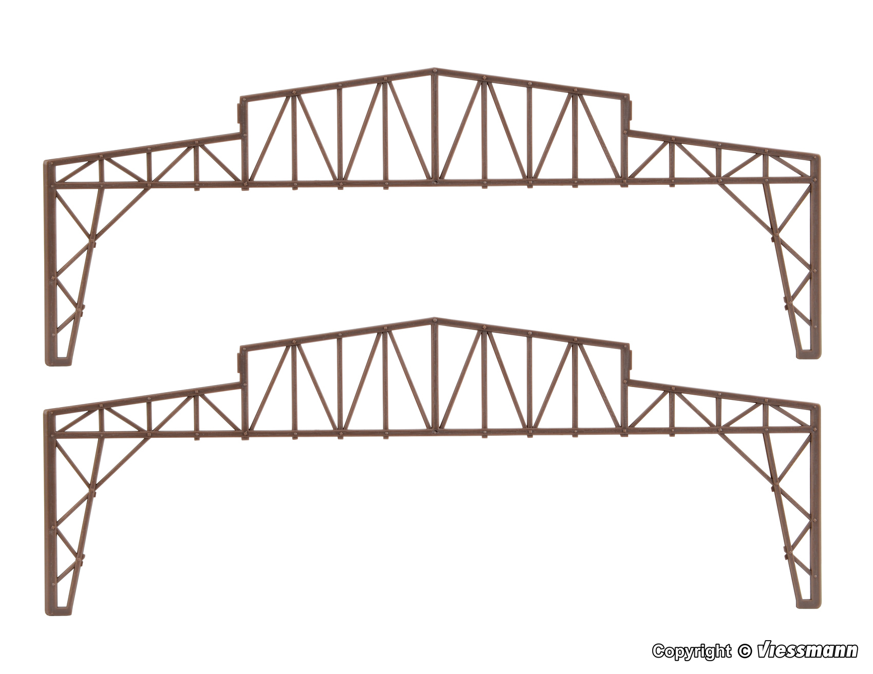Passend zum Ringlokschuppen Art. 45754. Setzen Sie diesen als sechsständigen Ringlokschuppen in Verbindung mit den Drehscheiben von Fleischmann Art. 6152 oder Märklin Art. 7286/7686 ein und möchten Sie eine geschlossene Halle ohne Zwischenwand, so benötigen Sie diesen Dachträger. Maße: L 30 x B 0,2 x H 11,4 cm.