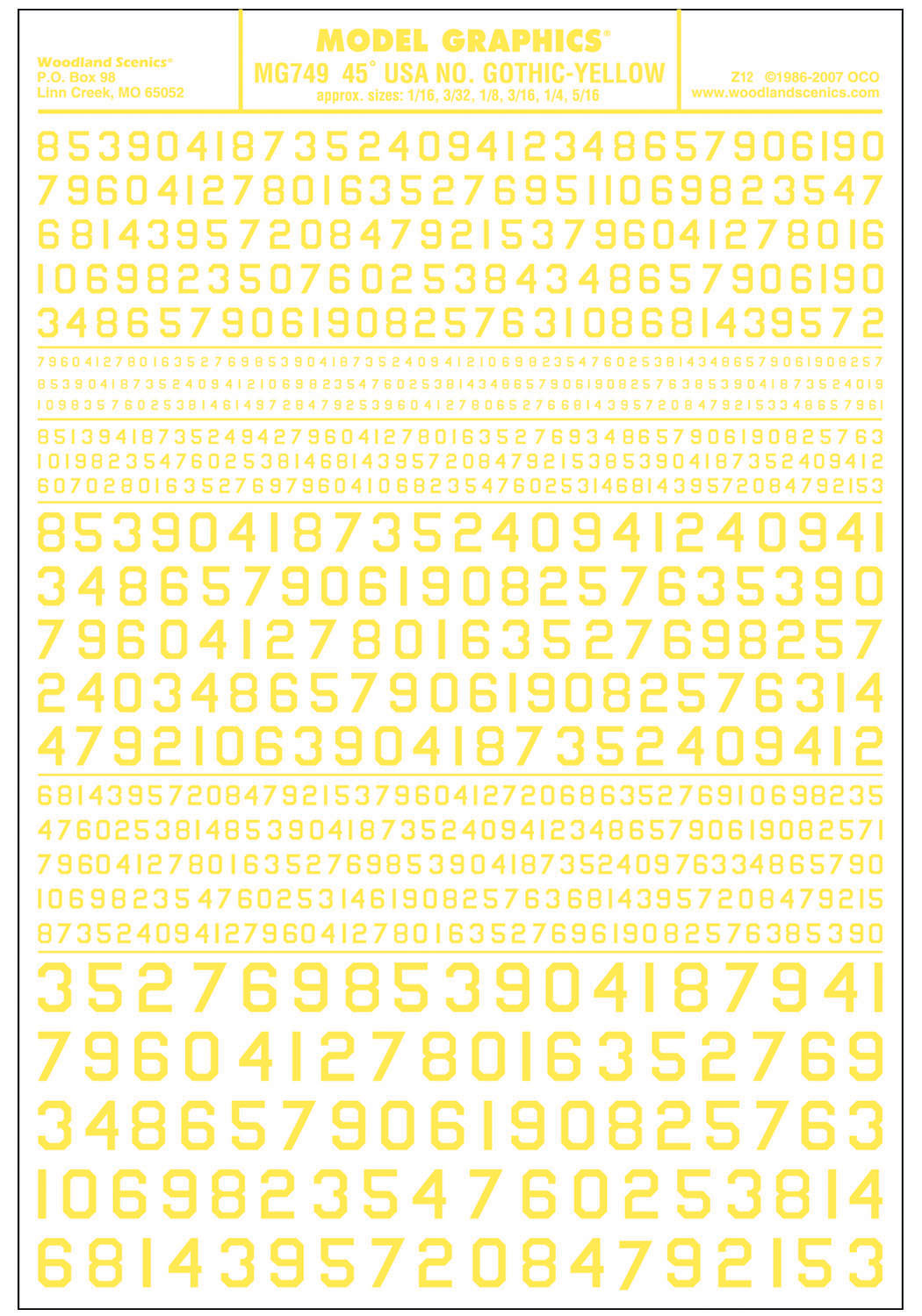 Woodland WMG749 Zahlen amerikanischer Typ, gelb