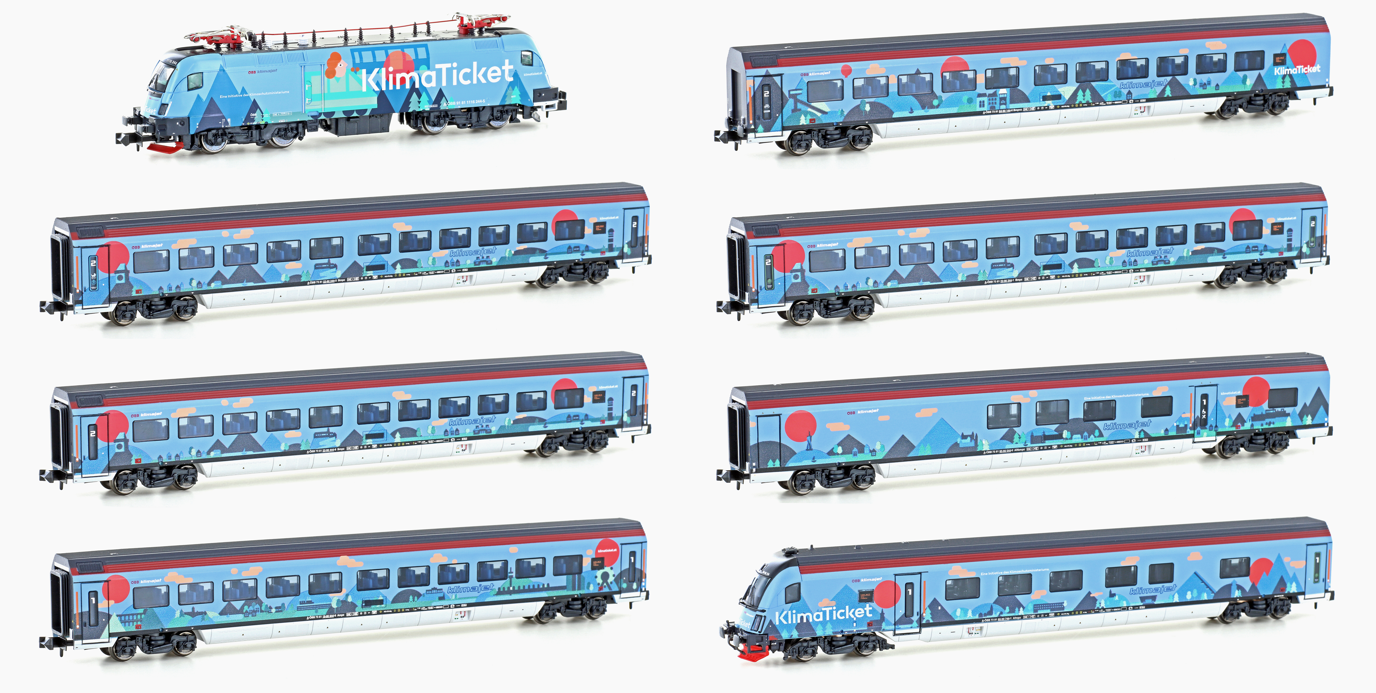 Seit 1. Oktober 2021 ist das Klimaticket bei der ÖBB erhältlich. Mit dem Klimaticket kann jedes teilnehmende öffentliche Verkehrsmittel in Österreich genutzt werden. Anlässlich der Einführung des neuen Tickets wurden zwei Züge der ÖBB und Westbahn mit einer entsprechenden Vollwerbung versehen. Für die ÖBB wirbt der Klimajet für das neue Ticket. Der achtteilige Railjet hat eine Gesamtlänge von 205 m und besteht aus der Lokomotive 1116 244, fünf Waggons, Speisewagen sowie einem Steuerwagen. Insgesamt 1.660m² Folie und knapp 500 Arbeitsstunden waren nötig um den ganzen Zug zu folieren.