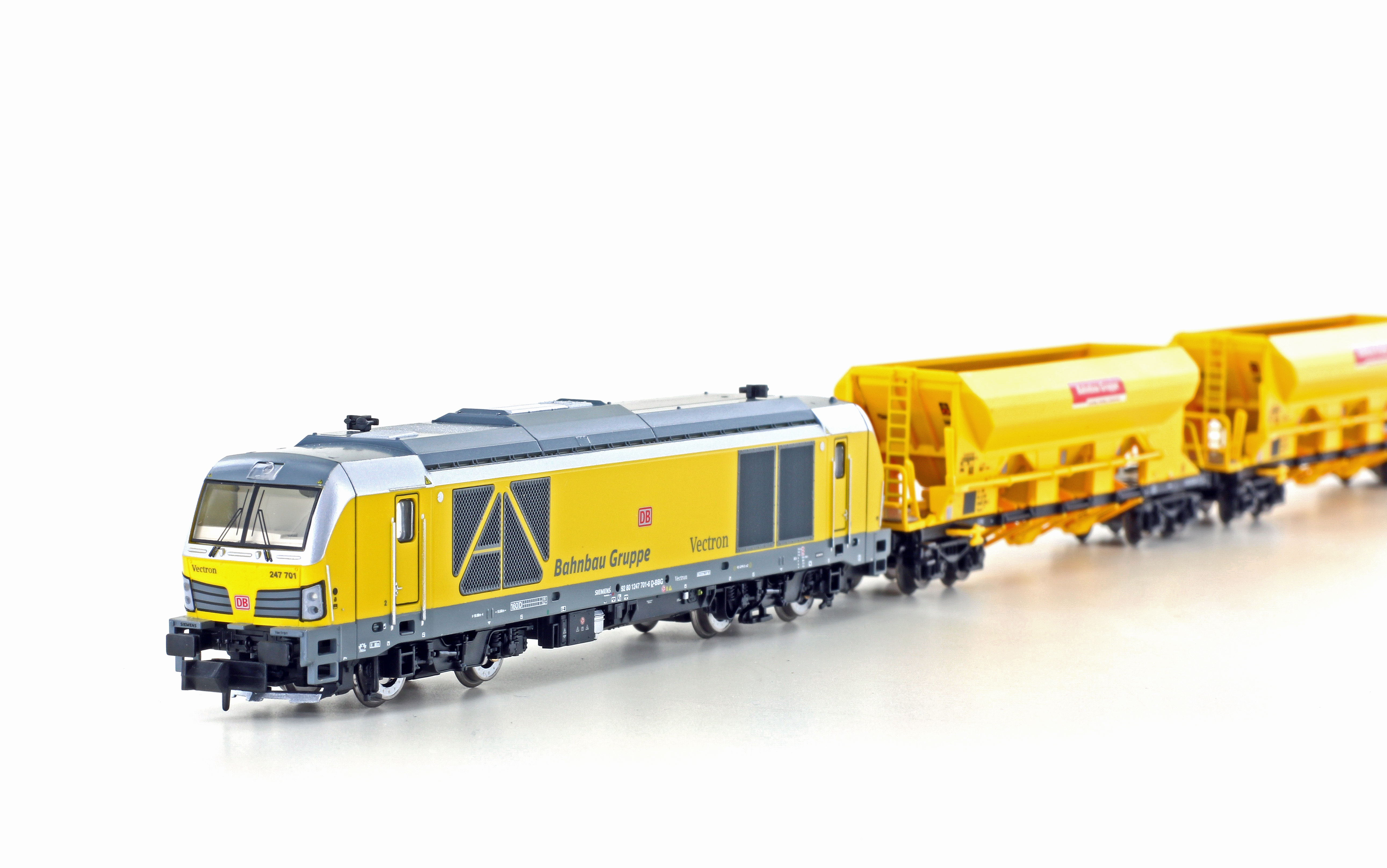Bauzug Diesellok BR 247 + 3x Schotterwagen DB Bahnbau, Ep.VI ? Sound Bauzug-Set bestehend aus einer Diesellok Baureihe 247 Vectron DE (Hobbytrain) und 3 Schotterwagen der Bauart Facns 133 [NME]
