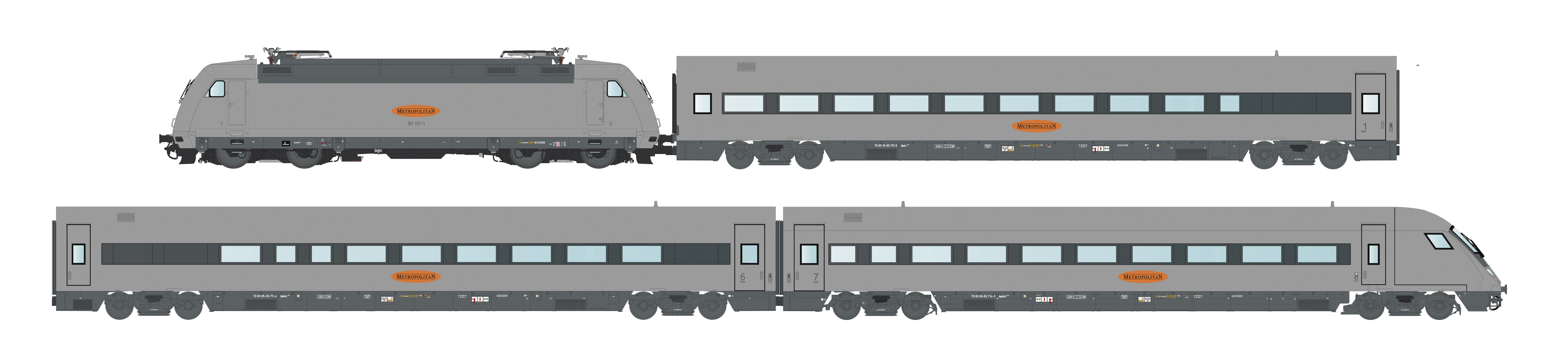 4-teiliges Personenzug-Set Metropolitan mit E-Lok BR 101, für die Epoche 5. Set 1