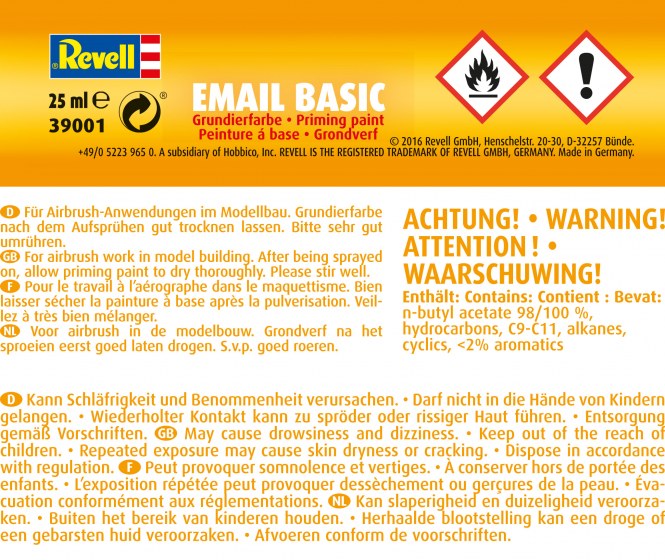 Für die Modell-Grundierung mit der Spray Gun gibt es speziell auf 'Airbrush Email Color' abgestimmte Grundierfarbe 'Airbrush Email Basic'.