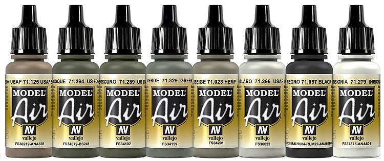 Farb-Set von Vallejo, Model-Air-Serie, für Flugzeuge der USA während des Vietnam-Krieges, 8 x 17 ml. (71023, 71057, 71125, 71279, 71289, 71294, 71296, 71329)