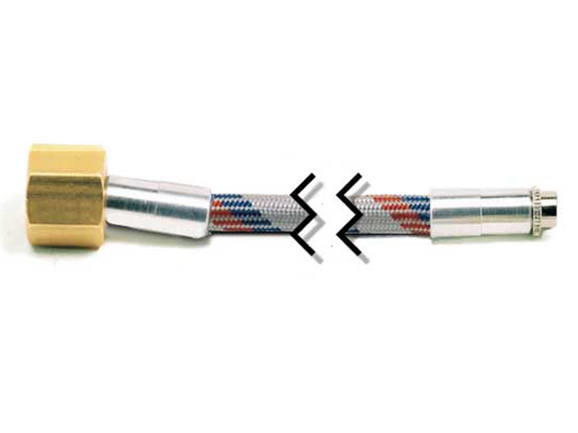Umsponnen, eine Seite mit Anschlußkopf für die Spritzpistole, die andere mit 1/4 -Anschluß für Kompressoren.