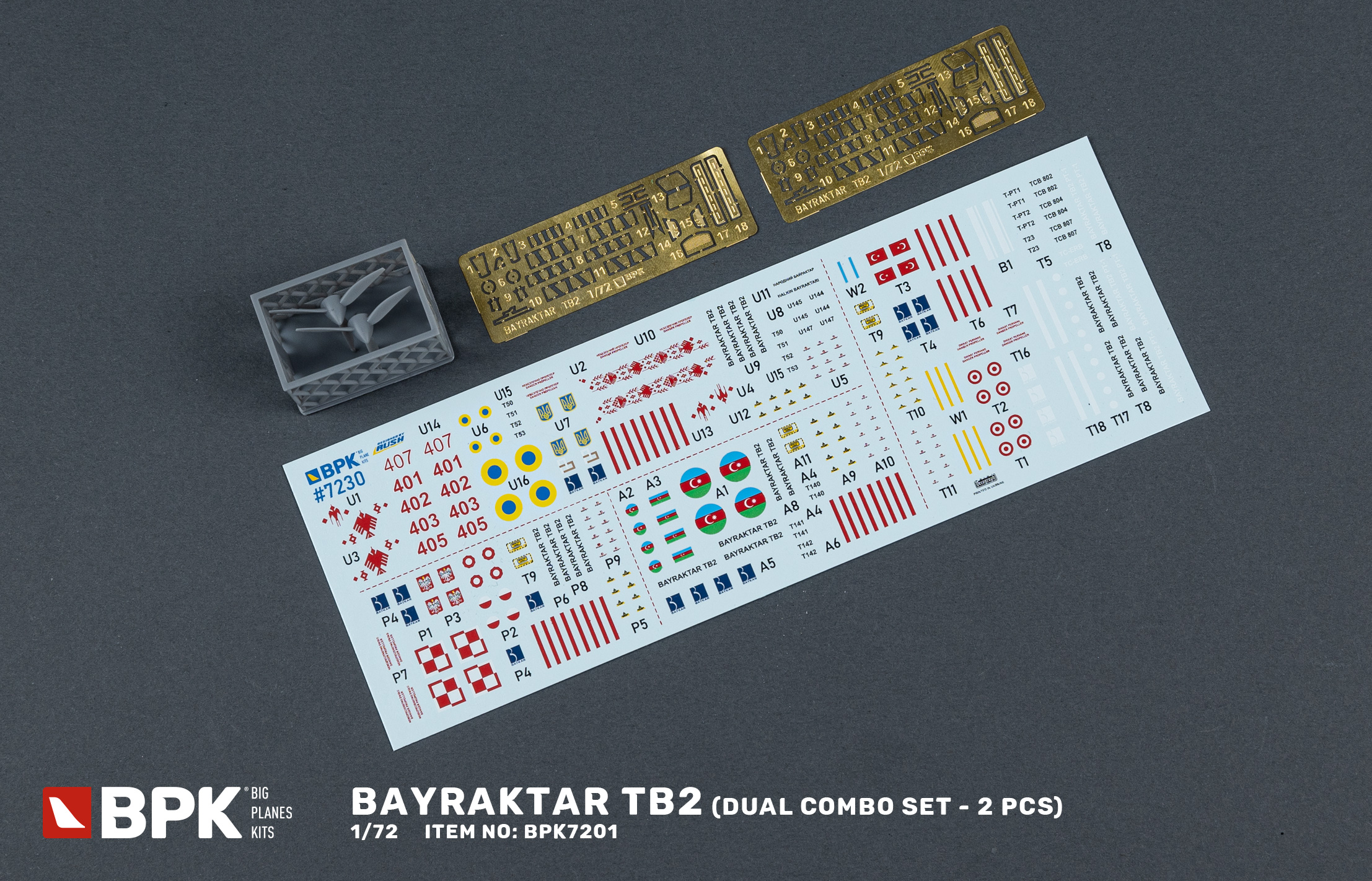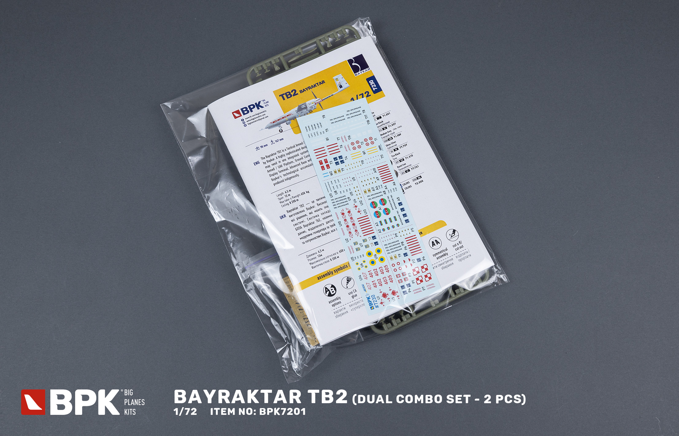 Scale plastic model assembly kit. Kit contains injection molded plastic parts, 3d print parts, photo etched detail, big decals. The model was developed using 3D CAD technology. Paint and glue are not included. Recommended for experienced model over 14 years of age. The model was produced with the approval of the Turkish company Baykar.