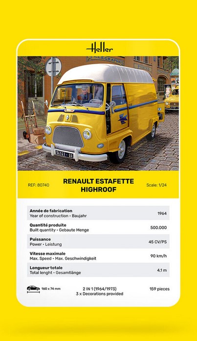 Es wird oft angenommen, dass der Renault 4 (Ref. Heller 80759), der 1961 auf den Markt kam, das erste Auto mit Vorderradantrieb von Renault war. Dies ist nicht der Fall. Es war das Nutzfahrzeug Renault Estafette aus dem Jahr 1959.