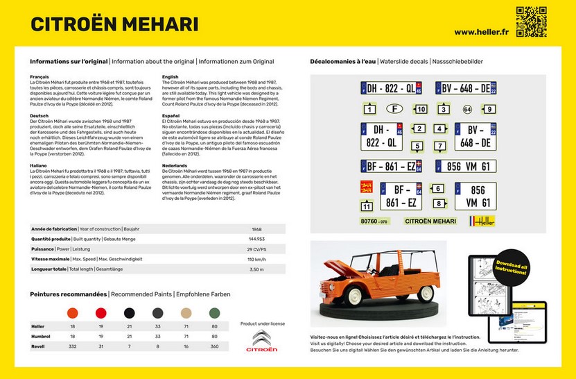 Der Citroën Méhari wurde zwischen 1968 und 1987 produziert, doch alle seine Ersatzteile, einschließlich der Karosserie und des Fahrgestells, sind auch heute noch erhältlich. Dieses Leichtfahrzeug wurde von einem ehemaligen Piloten des berühmten Normandie-Niemen-Geschwader entworfen, dem Grafen Roland Paulze d'Ivoy de la Poype (verstorben 2012).
