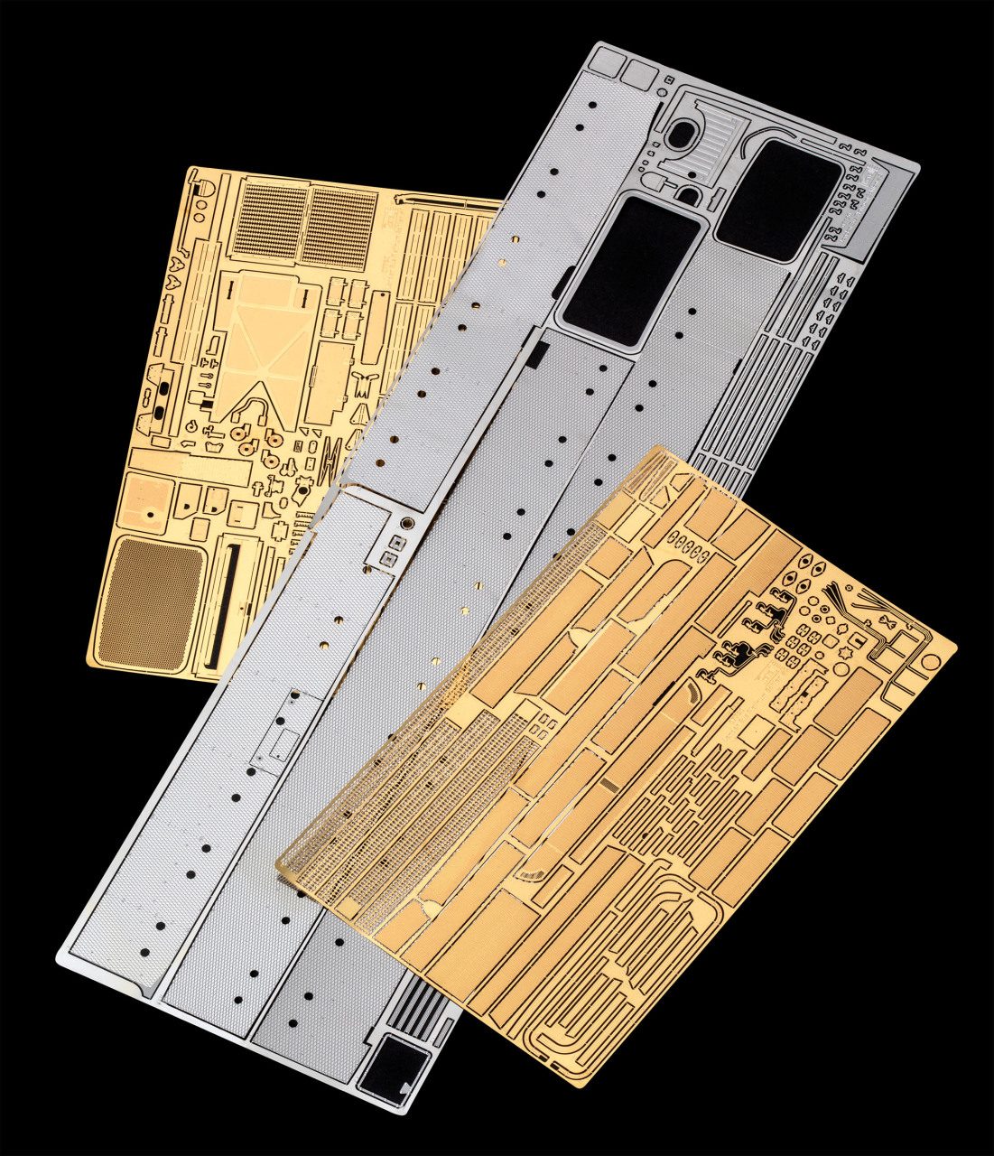 Der Bausatz beinhaltet neben Photoätzteilen auch einige Metallteile sowie Holzpaneele.