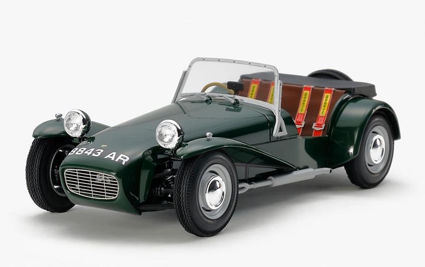Der Tamiya-Modellbausatz im Maßstab 1:24 ermöglicht eine detaillierte Nachbildung des Reihen-Vierzylindermotors, wobei Vergaser, Auspuffanlage, Getriebe und Federung authentisch dargestellt werden. Aluminium-Luftansaugtrichter für den Motor sowie eine Vielzahl von Fotoätzteilen sorgen für ein ultrarealistisches Finish. Der Super 7 kann als Straßenauto oder Clubman Racer zusammengebaut werden.
