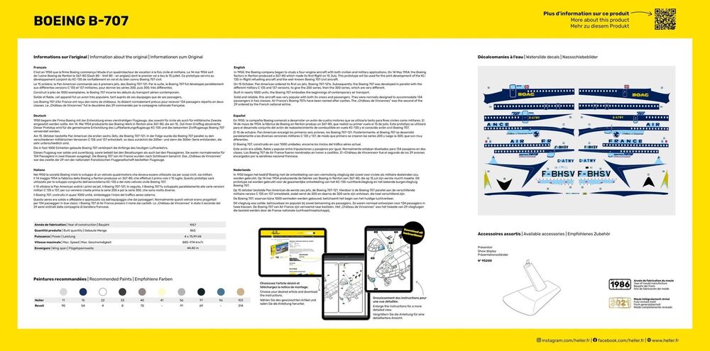1950 begann die Firma Boeing mit der Entwicklung eines vierstrahligen Flugzeugs, das sowohl für zivile als auch für militärische Zwecke eingesetzt werden sollte. Am 14. Mai 1954 produzierte das Boeing-Werk in Renton eine 367-80, die am 15. Juli ihren Erstflug absolvierte. Dieser Prototyp wird für die gemeinsame Entwicklung des Luftbetankungsflugzeugs KC-135 und des bekannten Zivilflugzeugs Boeing 707 verwendet werden. Am 15. Oktober bestellte Pan American die ersten sechs Jets, die Boeing 707-121. In der Folge wurde die Boeing 707 parallel zu den verschiedenen militärischen Versionen C 135 und 137 entwickelt, so dass zunächst die 200er- und dann die 300er-Serie entstanden, die sehr unterschiedlich sind. Die in fast 1000 Einheiten gebaute Boeing 707 verkörpert die Anfänge des heutigen Luftverkehrs. Dieses Flugzeug war solide und zuverlässig, sowie beliebt bei den Besatzungen als auch bei den Passagieren. Sie waren normalerweise für 134 Passagiere in zwei Klassen ausgelegt. Die Boeing 707 von Air France wurden nach Schlössern benannt. Das ?Château de Vincennes? war das zweite der 29 von der nationalen französischen Fluggesellschaft bestellten Flugzeuge.