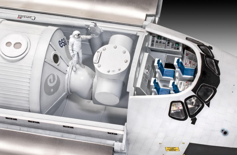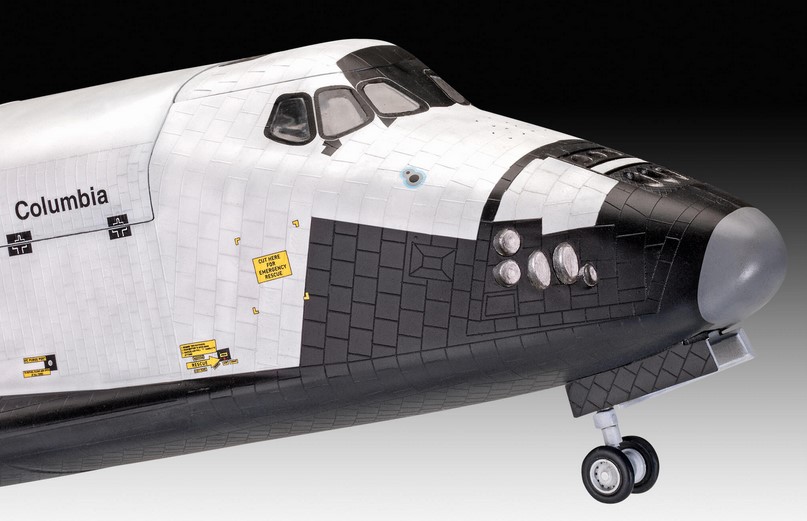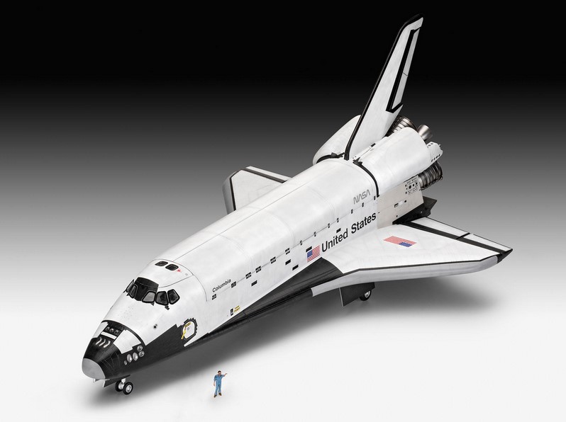 Das von der US-Raumfahrtbehörde NASA entwickelte "Space Shuttle" war lange Zeit weltweit das einzige wieder verwendbare Raumtransportsystem. Es bestand aus den Komponenten Raumfähre (Orbiter), mit drei wieder verwendbaren Haupttriebwerken, einem externen Treibstofftank und zwei Feststoffraketen mit einem Startschub von insgesamt 12,46 MN (1.270.566 kp). Die Raumfähre konnte gleichzeitig 24,5 Tonnen Nutzlast sowie 7 Astronauten in eine niedrige Erdumlaufbahn zwischen 200 und 650 Kilometer Bahnhöhe bringen. Der erste Start eines Space Shuttle ins All erfolgte am 12. April 1981 mit der Raumfähre "Columbia" - Nachbildung der Kachelstruktur - Detailliertes Cockpit - Cockpitdach wahlweise abnehmbar - 2 Besatzungsfiguren - Frachtraumtüren zu öffnen - Detailliertes Fahrwerk - Bewegliches Seitenruder - Herausnehmbares ESA-Raumlaboratorium - Beweglicher Transportarm (Ladearm) - Schubdüsen - Super-Abziehbild mit den Kennungen der Raumfähren Columbia, Discovery, Atlantis und Endeavour. Neben Basisfarben sind auch Kleber und Pinsel enthalten.