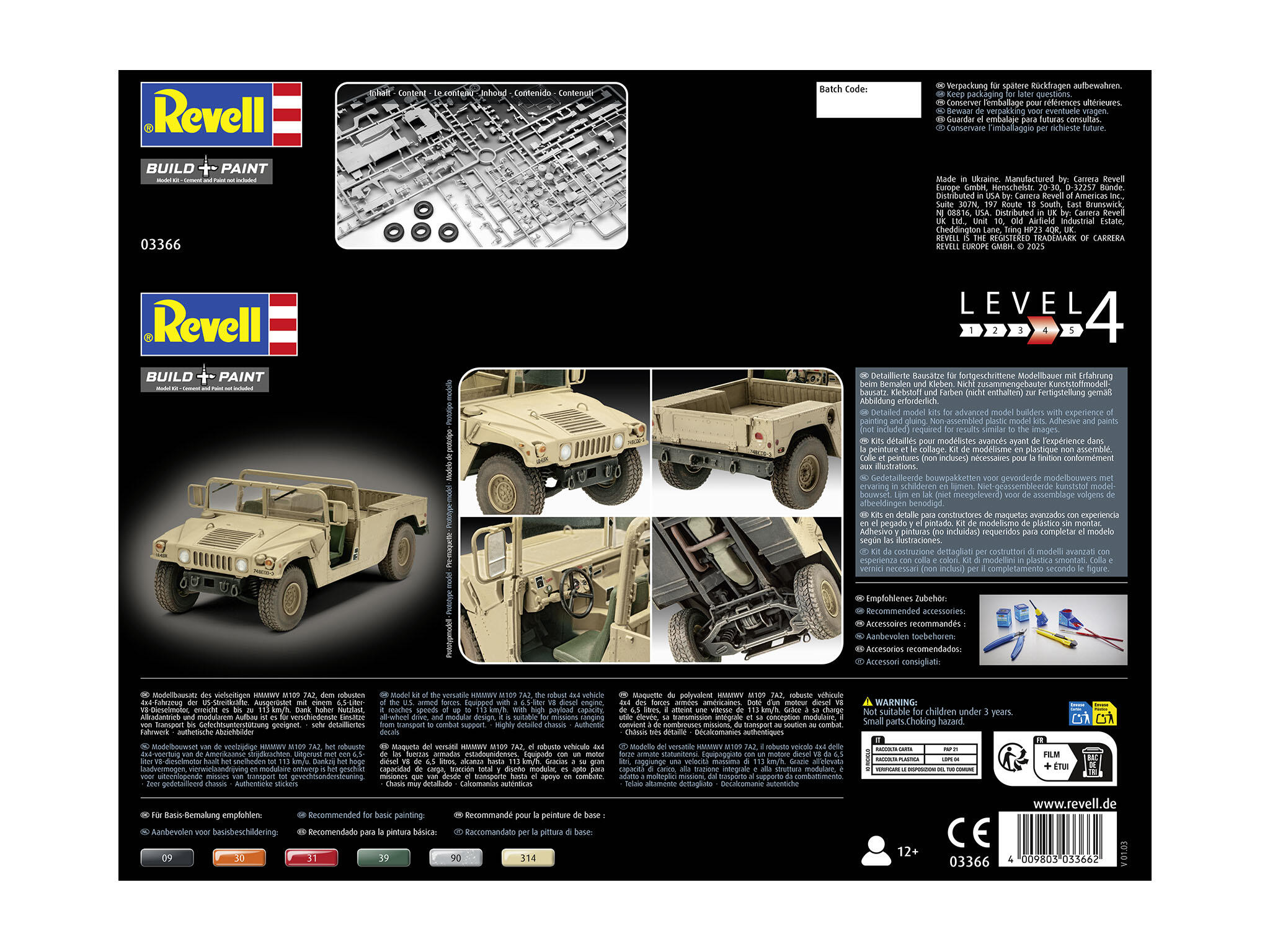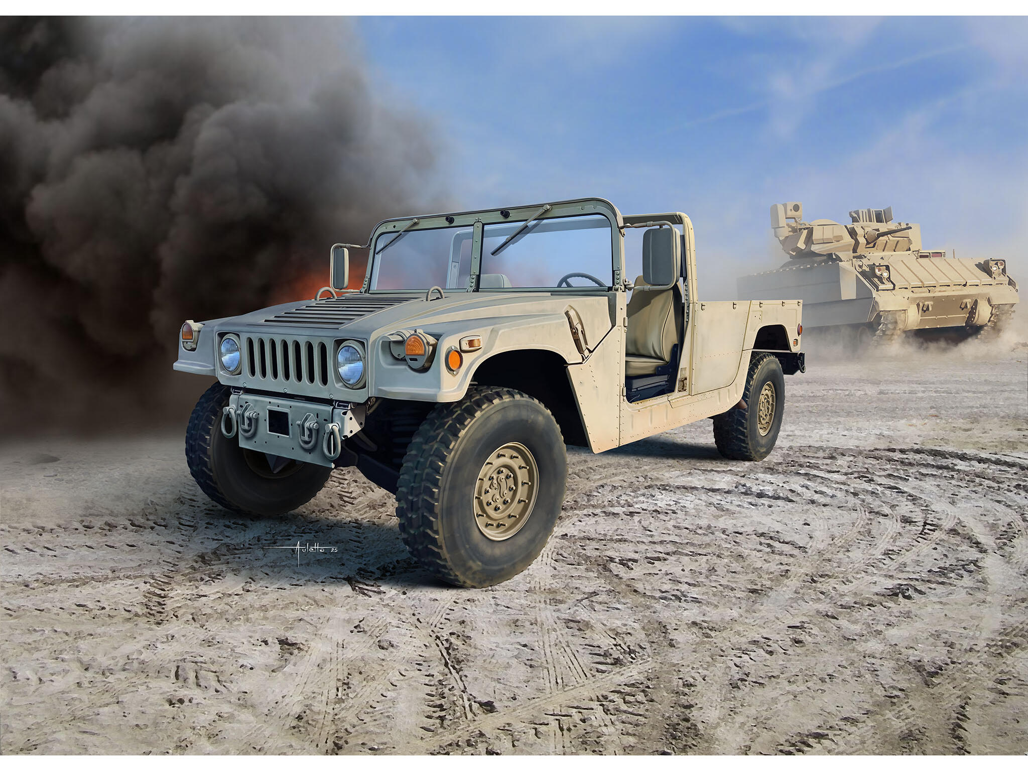 Modellbausatz des vielseitigen HMMWV M1097A2, dem robusten 4x4-Fahrzeug der US-Streitkräfte. Ausgerüstet mit einem 6,5-Liter-V8-Dieselmotor, erreicht es bis zu 113?km/h. Dank hoher Nutzlast, Allradantrieb und modularem Aufbau ist es für verschiedenste Einsätze von Transport bis Gefechtsunterstützung geeignet. - sehr detailliertes Fahrwerk Authentische Darstellung folgender Versionen: - Observer Controller, NTC, Fr. Irwing-CA Mojave Desert - Scorpion Team - Observer Controller, NTC, Fr. Irwing-CA Mojave Desert - Goldminer Team - Observer Controller, NTC, Fr. Irwing-CA Mojave Desert - Sidewinder Team - Observer Controller, NTC, Fr. Irwing-CA Mojave Desert - Bronco Team - Observer Controller, NTC, Fr. Irwing-CA Mojave Desert - Tarantula Team - Observer Controller, NTC, Fr. Irwing-CA Mojave Desert - Cobra Team - US Army, Unknown Unit, NATO Exescise North-East Europe - Ukraine, Ground Forces, Camo 2024 - Ukraine, US Camo, Donetsk Front