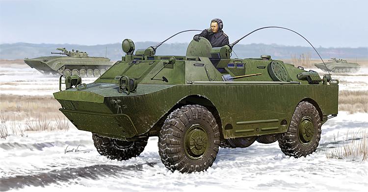 Plastikmodellbausatz eines modernen russischen gepanzerten Fahrzeuges mit über 220 Teilen, Photoätzteilen und Gummireifen. Länge gebaut: 164,7 mm / Breite: 65,0 mm.