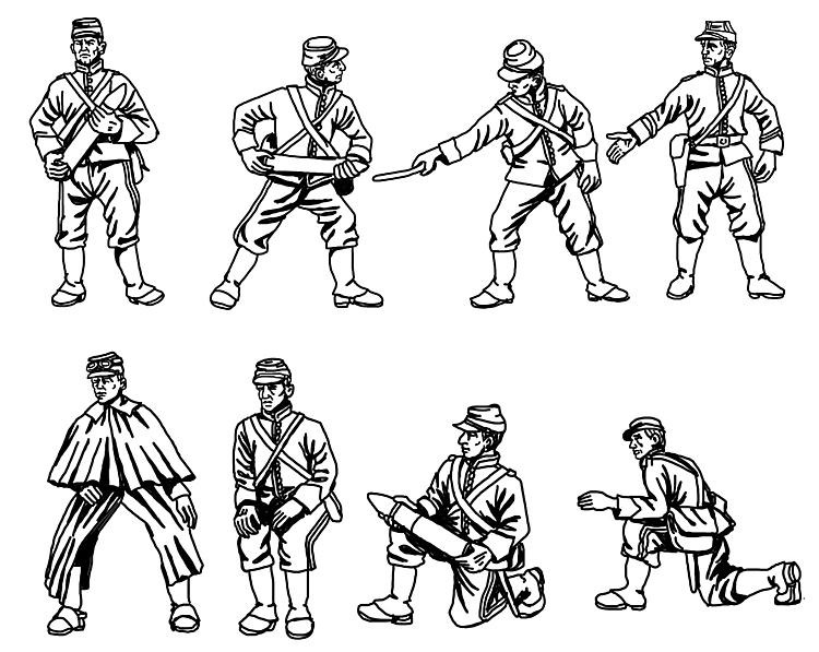 HÄT 8159: 1. Weltkrieg: französische Artillerie-Mannschaft, unbemalt. Inhalt für 32 Figuren in 8 verschiedenen Posen.