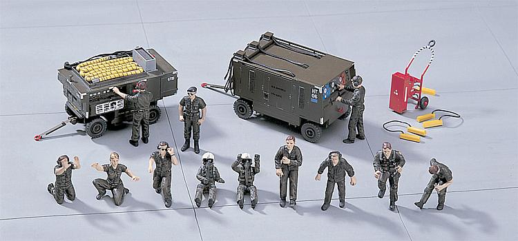 Plastikmodellbausatz für Figuren: Set mit verschiedenen Figuren, Werkzeugen und Fahrzeugen.