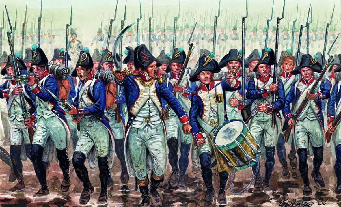 Französische Infanteristen in der Uniform und Ausrüstung der Nachrevolution waren die Hauptakteure in den militärischen Operationen des Konsulats und des frühen Kaiserreichs. Sie waren entscheidend in Schlachten wie Marengo (1800) und Austerlitz (1805). Ausgerüstet mit der Vorderladermuskete Charleville 1777 wurden sie von jungen und motivierten Offizieren angeführt, die fest an Napoleon glaubten.