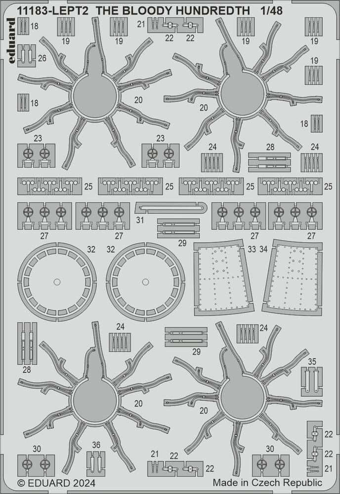 - Extra Spritzling für 2 alternative B-17F Bugvarianten, inklusive Astrodome und Wangenkanonenfenster, entwickelt in Zusammenarbeit mit HK Models nach Eduard Design.